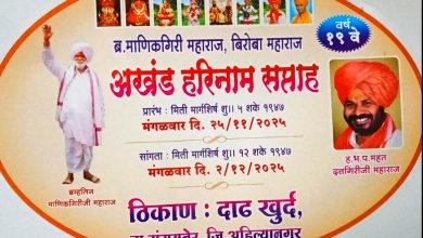 ब्रम्हलिन सद् गुरू माणिकगिरी महाराज व बिरोबा महाराज १९ वा अखंड हरिनाम सप्ताह श्रीक्षेत्र दाढ खुर्द ता. संगमनेर जिल्हा अहिल्यानगर येथे भव्यदिव्य स्वरूपात विविध कार्यक्रमासह आयोजन…..