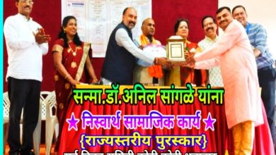 निःस्वार्थ सेवेला राज्याचा मान मा. डॉ. अनिल सांगळे यांना निःस्वार्थ सामाजिक कार्य राज्यस्तरीय पुरस्कार २०२५ विविध मान्यवरांच्या उपस्थितीत प्रदान……