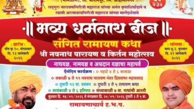 श्रीक्षेत्र भामाठाण अडबंगनाथ तपोभूमी येथे संगित रामायण कथा,श्री नवनाथ पारायण व किर्तन महोत्सव व भव्यदिव्य धर्मनाथ बीज सोहळ्यासह विविध कार्यक्रमाचे…