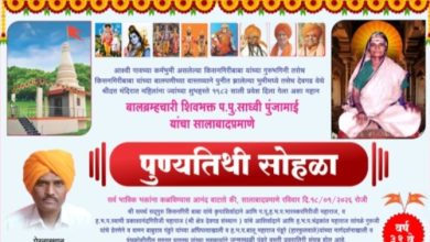 बाल ब्रह्मचारी शिवभक्त प.पु.साध्वी पुंजाबाई यांचा पुण्यतिथी सोहळ्या निमित्ताने श्रीक्षेत्र पुनतगाव व पाचेगाव येथे तीन दिवस विविध कार्यक्रमांचे आयोजन….