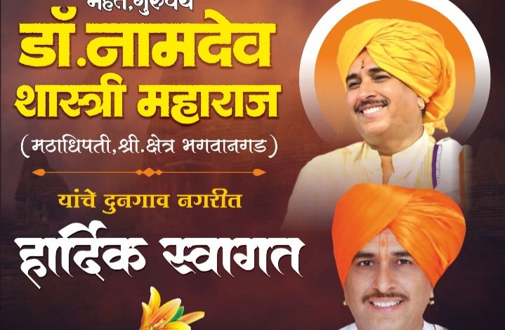 महंत गुरूवर्य डॉ.नामदेव शास्त्री महाराज व महंत गुरूवर्य कृष्णा महाराज शास्त्री यांचे अखंड हरिनाम सप्ताह निमित्ताने आज शुक्रवार ०२/०१/२०२६ रोजी श्रीश्रेत्र दुनगाव ता.अबंड जि.जालना येथे भव्यदिव्य स्वरूपात मिरवणुक सह आगमन सोहळा….