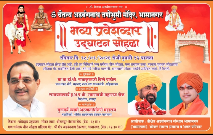 रविवार दिनांक १८/०१/२०२६ रोजी दुपारी १२ वाजता भव्यदिव्य प्रवेशद्वार उद्घाटन सोहळा संपन्न होणार आहे.